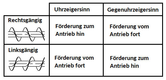 Die Schneckenwellen und Spiralen werden entweder rechtsgängig oder linksgängig ausgeführt. Hier ein Überblick dazu.