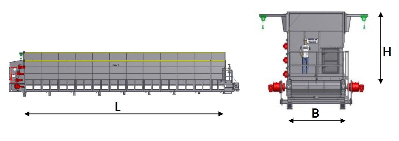 Mit dem Annahmedosierer können sie Materialien wie zum Besispiel Biomasse, Kompost, Holzhackschnitzel, Steine, Granulate usw. annehmen, zwischenlagern und optimal dosiert dem nächsten Prozessapparat zuführen. Beim Produktaustritt werden je nach Anwendungsfall noch Haspelwellen / Abfräswalzen eingesetzt um das Fördergut aufzulockern.